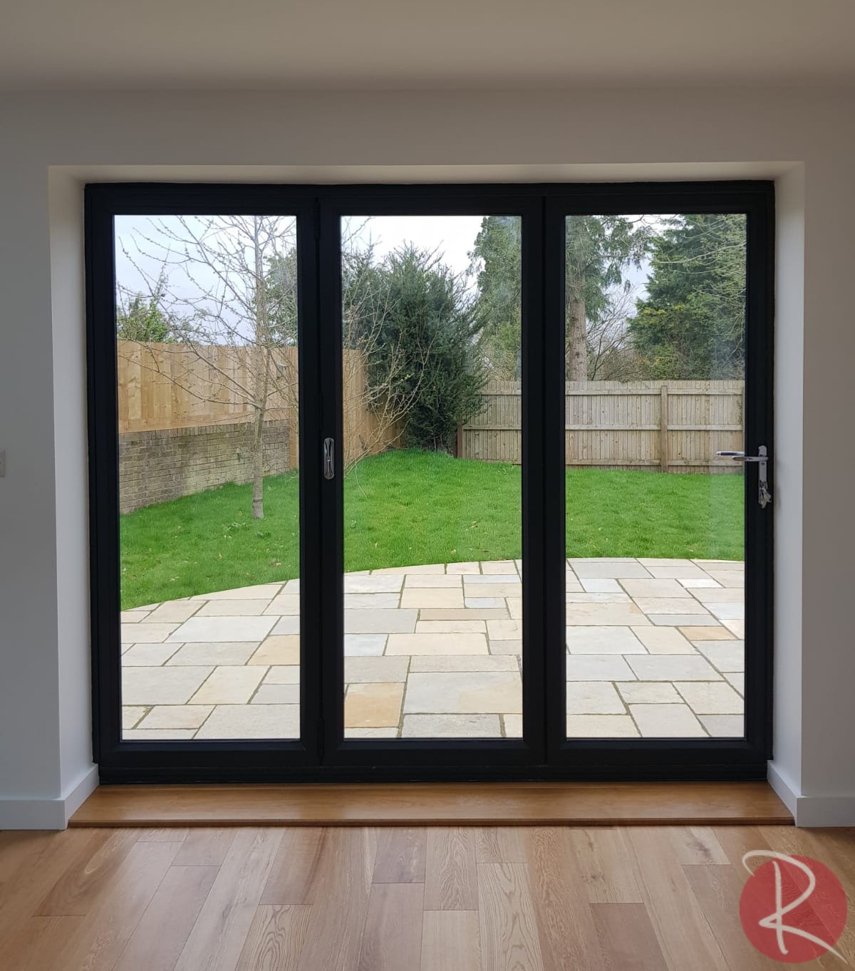 Fully open black aluminium bifold doors